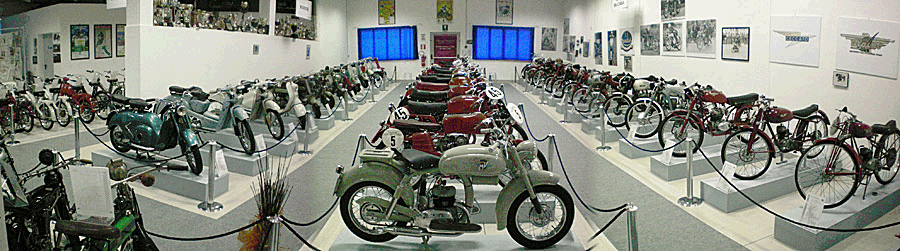 Il museo, in 4 padiglioni per complessivi 650 mq., raccoglie 160 pezzi di 34 marchi diversi dell'industria motociclistica italiana e qualcuno dei più importanti esempi dell'industria europea.