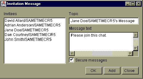 Select a name and click "Message..." to send that person an instant message. Unlike mail, an instant message appears on a person's computer screen almost instantly, on top of any other windows the user might have open.