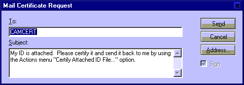 In releases of Notes prior to R5.0.9, users often did not know how to address requests for certificate renewal. When a user's Notes certificate is due to expire, the user is prompted to request a new certificate from File -> Tools -> User ID -> Certificates -> Request Certificate. This option presents the user with a Mail Certificate Request, in which the subject field is completed but the To field is not. As a result, users have to go through the time-consuming and often frustrating process of determining the correct e-mail address to which to send the request.